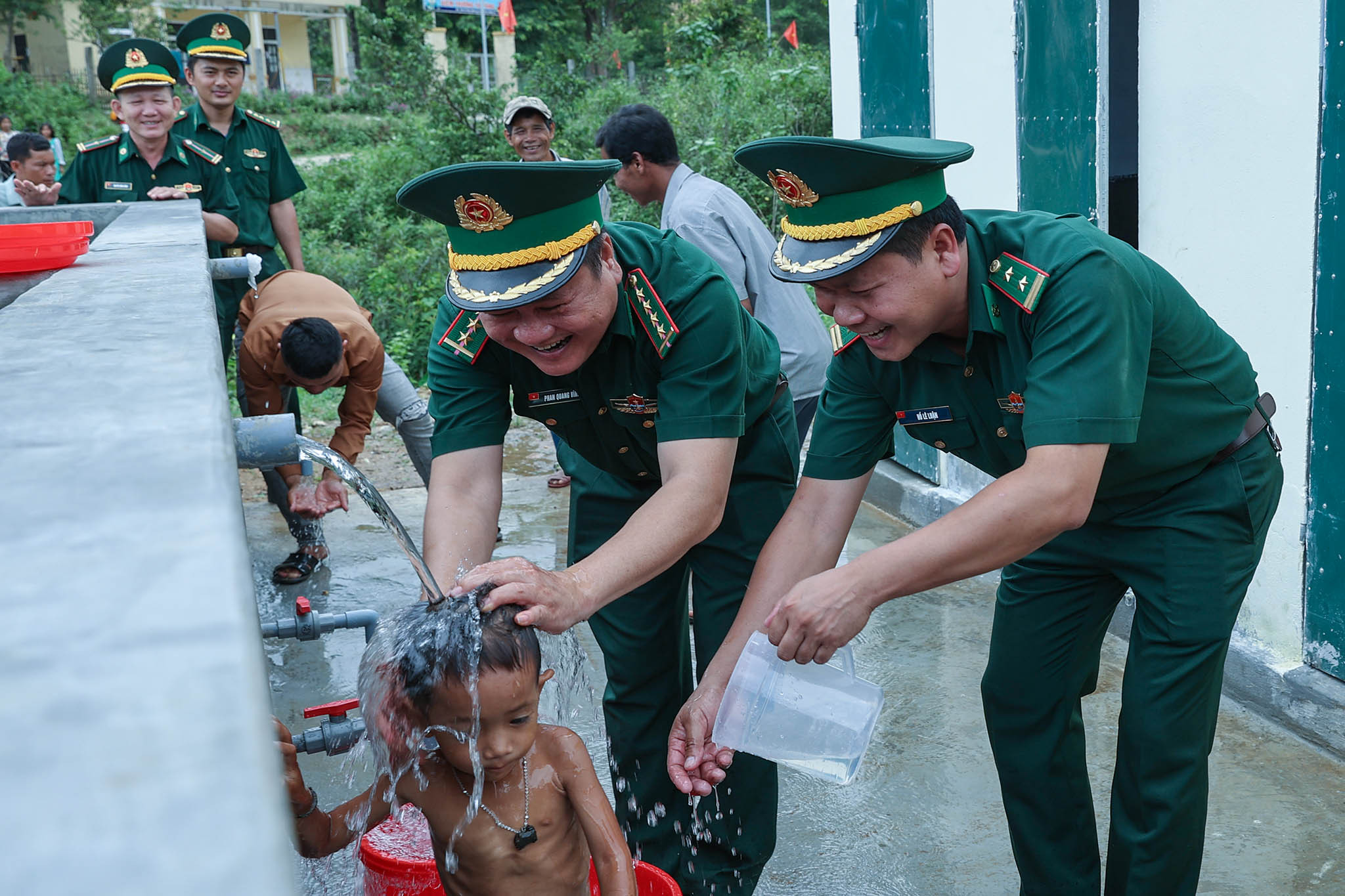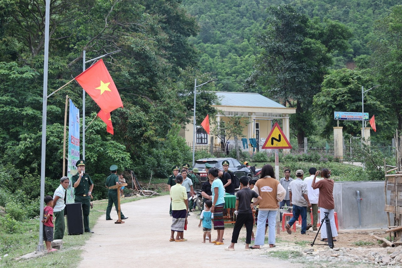 Đại tá Đinh Xuân Hùng, Bí thư Đảng uỷ, Chính uỷ Bộ đội Biên phòng Quảng Trị đến dự lễ bàn giao diễn ra hôm nay (3/6). Được biết các công trình này do cán bộ, chiến sĩ Đồn Biên phòng Hướng Lập trực tiếp xây dựng với khoảng 300 ngày công.