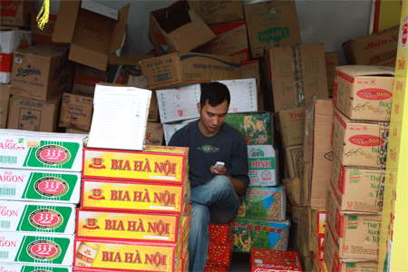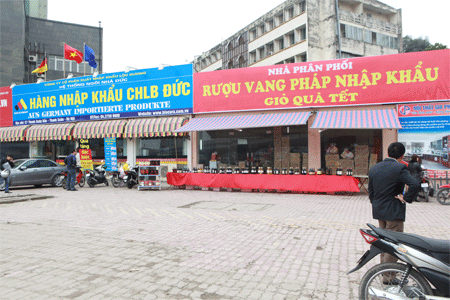 Như mọi năm rượu ngoại chỉ xuất hiện trong các trung tâm thương mại thì năm nay các vỉa hè cũng bày bán các sản phẩm này