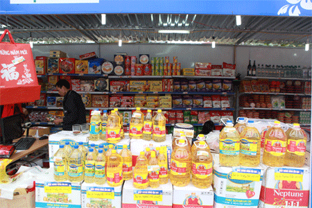 Ở gian hàng này đồ nhu yếu phẩm được bày bán đa dạng về các chủng loại mặt hàng