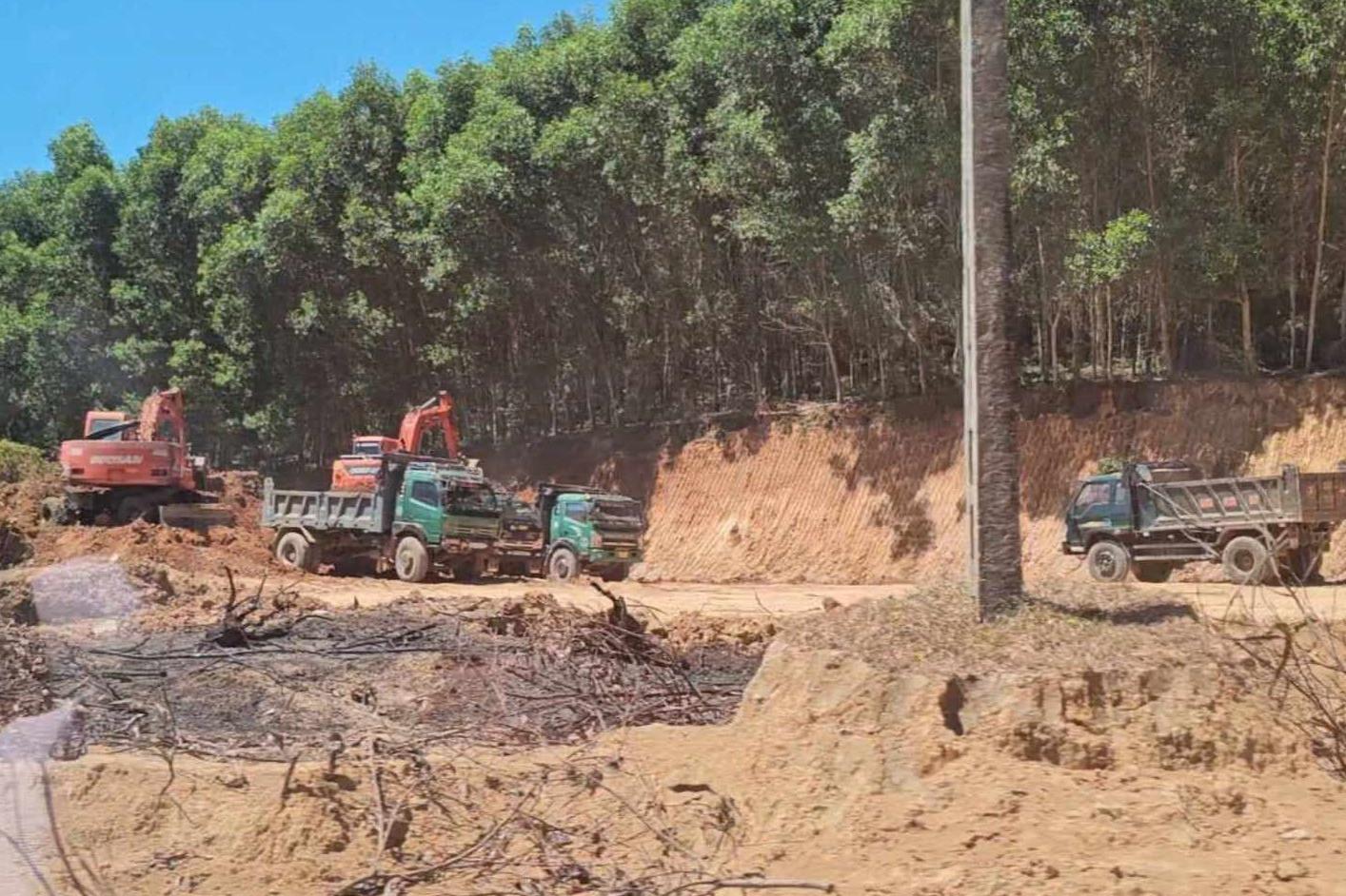 Một người dân cho biết, nhà thầu đã huy động 3 máy xúc và hàng chục xe tải hoạt động từ sáng đến tối. Sau hơn 1 tháng triển khai, có hàng nghìn chuyến xe, tương đương hàng nghìn m3 đất được vận chuyển ra khỏi hiện trường, phần lớn được bán cho người dân với giá 700.000 đồng/xe.