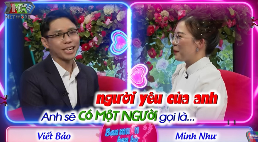 Sau màn chào hỏi, cả hai được mặt đối mặt khi mở rào. Viết Bảo bị choáng ngợp bởi nhan sắc xinh đẹp của Minh Như. Anh không ngại buông những lời “thả thính” để chinh phục đối phương: “Những cặp đôi khác, họ sẽ dành tặng những đóa hoa cho nhau nhưng anh nghĩ anh không giống như vậy bởi vì đóa hoa đẹp nhất đang đứng trước mặt anh rồi. Anh chỉ muốn nói với em là anh sẽ tô điểm cho bó đóa hoa đó bằng cách chuẩn bị cho em một cặp hoa tai. Anh xin phép đeo lên cho em”.