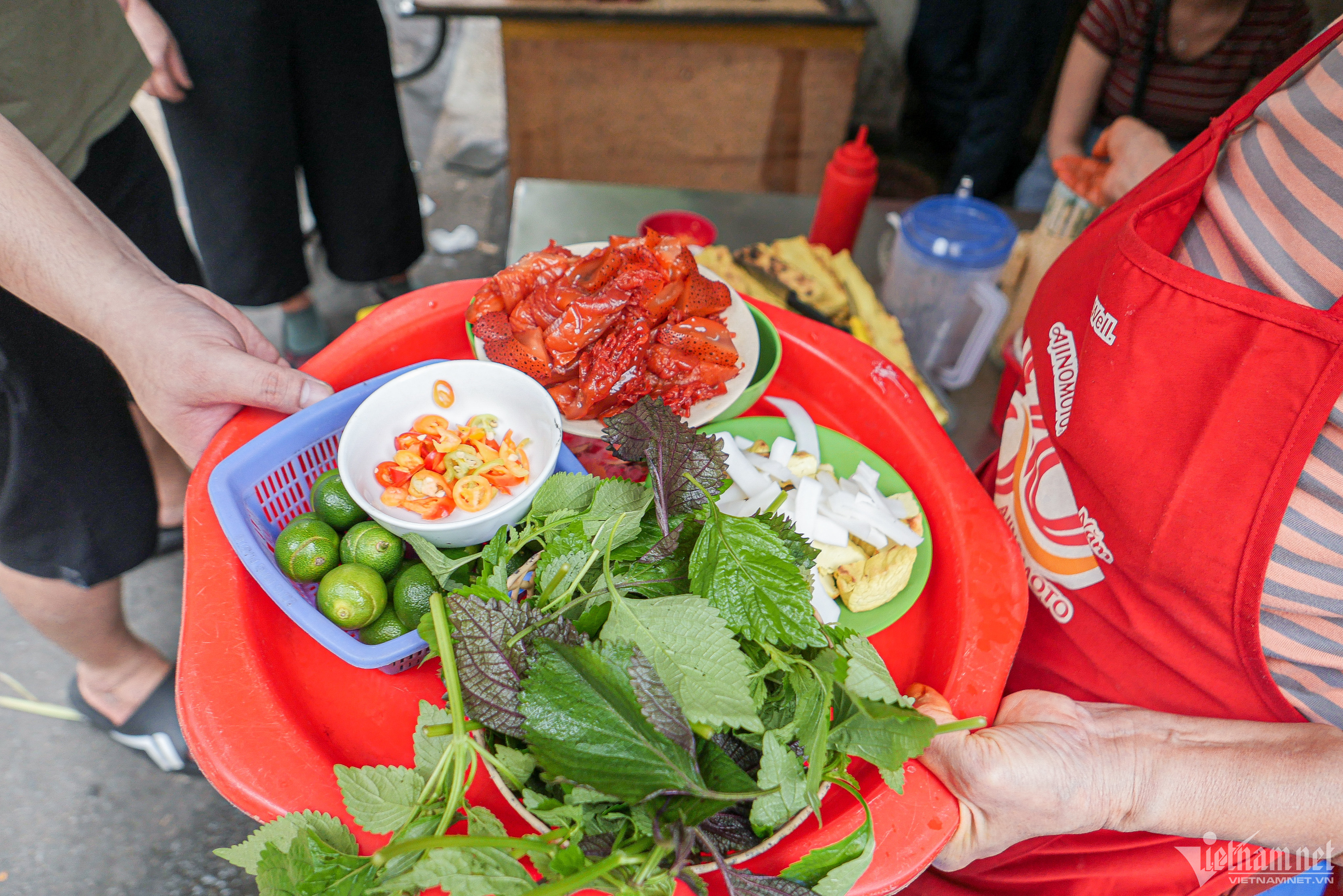 Do bán hàng ngay sát vỉa hè, chỗ ngồi chật hẹp nên từ 9-12h sáng, bà Tuyết chủ yếu bán mang về. Bà chỉ bán tại chỗ từ 12h trưa tới 18-19h, hết hàng lúc nào nghỉ lúc đó. "Nhiều khi khách đông quá, chẳng còn chỗ để xe, sợ khách chờ lâu nên tôi phải nhờ họ mua mang về nhà ăn. Do tôi có kinh nghiệm chọn sứa nên nhiều khách tới mua 1-2kg ăn dần trong vài ngày", bà Tuyết cho biếtNăm nay, do giá sứa đỏ tăng nên mỗi suất sứa đỏ mắm tôm của nhà bà Tuyết tăng từ 30.000 lên 35.000 đồng/suất