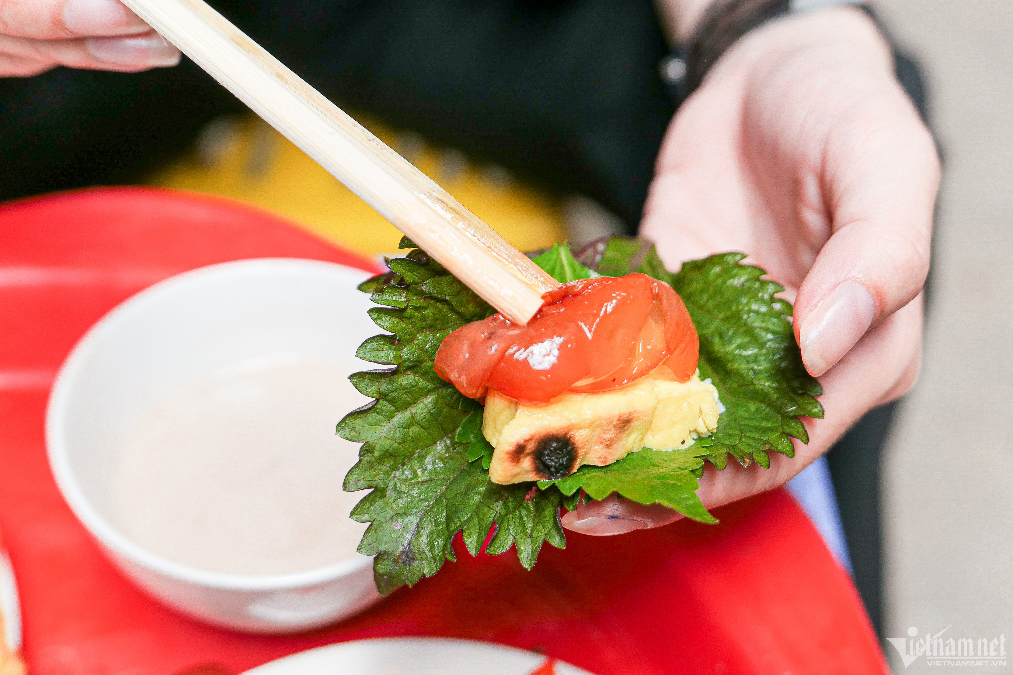 Bà Tuyết đã bán sứa đỏ gần 30 năm ở Thanh Hà (Hà Nội). Dù quán nhỏ, cũ kĩ nhưng cứ vào mùa sứa, bà lại bán "mỏi tay", ngày hết 70-80kg. Quán của bà trở thành địa chỉ quen thuộc của những thực khách yêu thích món 'sashimi Việt' đỏ au.