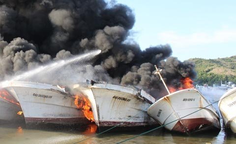 | Sau nhiều năm bỏ hoang, đội tàu composite nhập khẩu trị giá hàng chục tỷ đồng đã xuống cấp trầm trọng và bốc cháy dữ dội vào tháng 5/2012. |