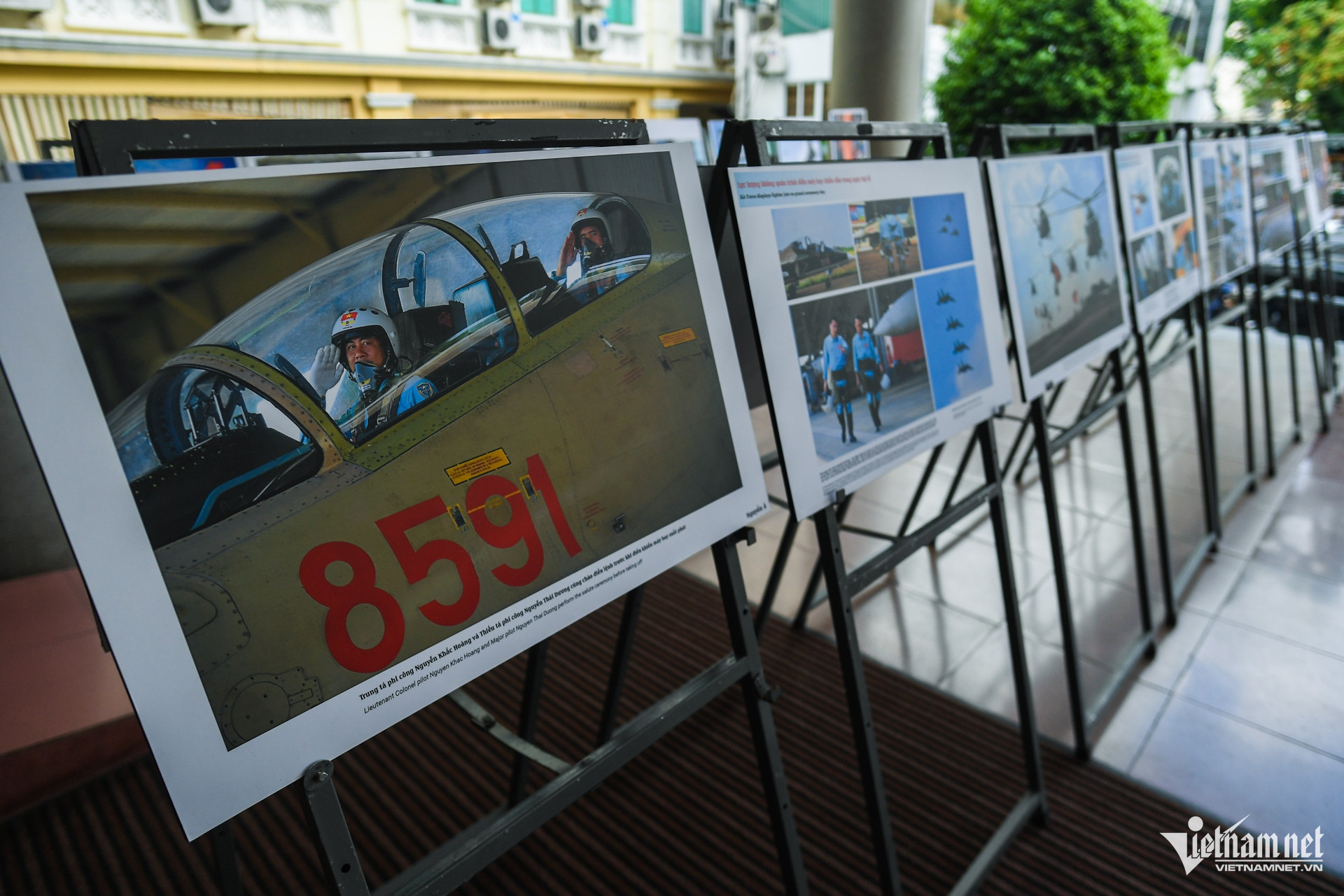Hai vị khách mời đặc biệt trong buổi triển lãm và ra mắt sách là Thiếu tướng, PGS.TS Nguyễn Văn Sáu (trái) và Thượng tá Đặng Đình Kiên (giữa) - phi công điều khiển Su-30MK2 bay qua TP.HCM trong Đại lễ 30/4. Cả hai vị khách mời đều có những chia sẻ gần gũi về Nguyễn Á và những trải nghiệm lý thú khi được trở thành nhân vật trong những khung hình của nhiếp ảnh gia.