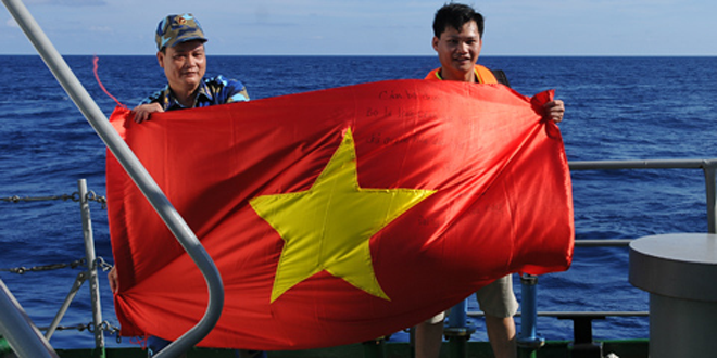 Cờ Tổ quốc tung bay giữa Hoàng Sa.