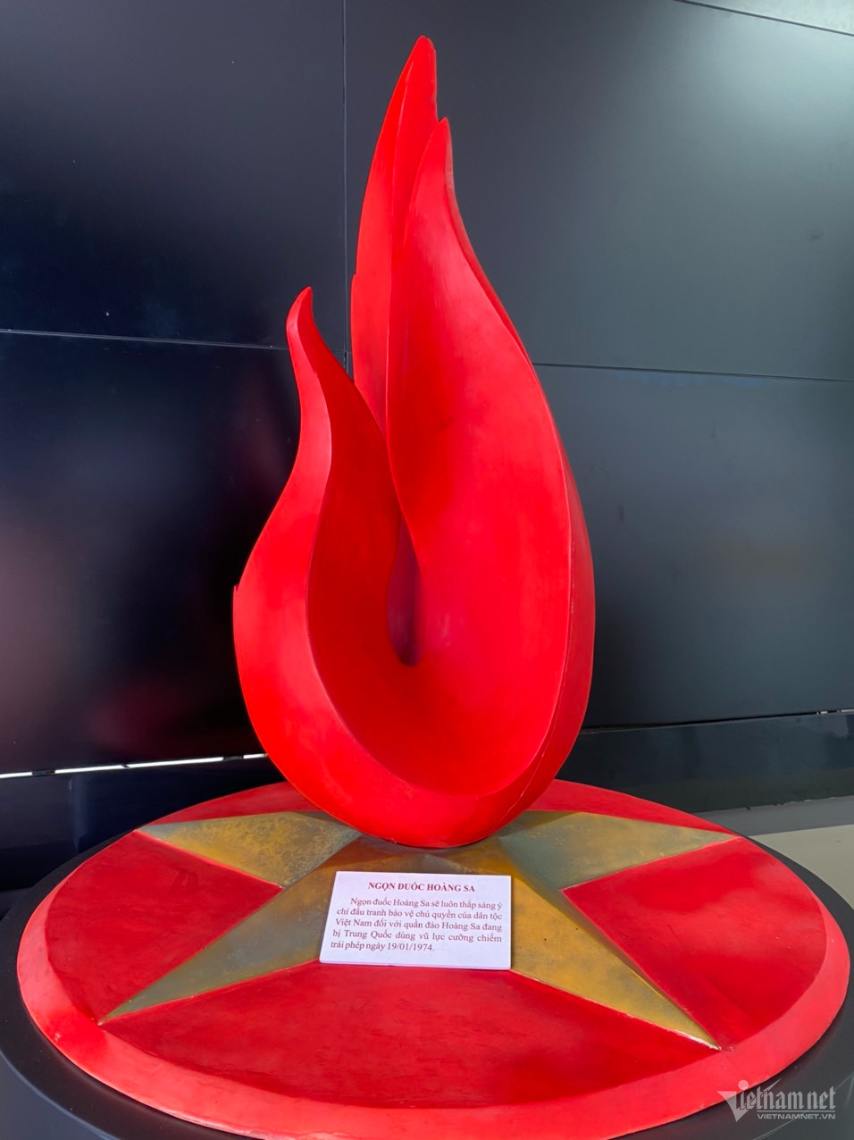 Nhà trưng bày Hoàng Sa nằm trên Đường Hoàng Sa ở quận Sơn Trà, Đà Nẵng. Bất cứ ai đi qua tuyến đường ven biển dọc bãi biển Mỹ Khê này đều ấn tượng bởi kiến trúc bên ngoài nhà trưng bày với hình lá cờ đỏ sao vàng đã bị phai màu bởi nắng gió.Chiếc tàu cá lấy số hiệu ĐNA 90152 đặt ngay phía ngoài thu hút mọi sự chú ý. Đây chính là số hiệu của chiếc tàu bị Trung Quốc tông chìm khi xâm phạm chủ quyền của Việt Nam trên quần đảo Hoàng Sa. Ngay lối vào nhà trưng bày là tấm biển điện tử với dòng chữ "Hoàng Sa là của Việt Nam" bằng hai thứ tiếng Anh - Việt như một lời khẳng định đanh thép về chủ quyền của Việt Nam với quần đảo Hoàng Sa. Nhà trưng bày Hoàng Sa gồm 3 tầng, miễn phí hoàn toàn cho khách thăm quan, mở cửa cả tuần trừ thứ 2. Đây có thể coi là kho tàng sống trưng bày hơn 300 tài liệu, hiện vật, hình ảnh, bản đồ, những bằng chứng khẳng định chủ quyền của Việt Nam với Hoàng Sa trong lịch sử. Hình ảnh 'Ngọn đuốc Trường Sa' đỏ rực được đặt ngay lối vào Nhà trưng bày Hoàng Sa, là biểu tượng luôn thắp sáng ý chí đấu tranh bảo vệ chủ quyền của dân tộc Việt Nam đối với quần đảo Hoàng Sa đang bị Trung Quốc dùng vũ lực cưỡng chiếm trái phép ngày 19/1/1974.Nhà trưng bày Hoàng Sa thành lập ngày 8/8/2017. Đây là thiết chế văn hóa, lịch sử mang ý nghĩa đặc biệt, là nơi trưng bày và tuyên truyền những thông tin, tư liệu, hình ảnh sinh động minh chứng lịch sử và quá trình khai phá, xác lập và bảo vệ chủ quyền của Việt Nam với quần đảo Hoàng Sa. Lá cờ đỏ sao vàng được 1 người dân trao tặng cho UBND Huyện Hoàng Sa được trưng bày tại đây. Bộ sưu tập báo chí 'Hoàng Sa và Trường Sa là của Việt Nam' của hai nhà sưu tập Trần Thanh Phương và Phan Thu Hương được tập hợp và trưng bày ở Nhà trưng bày Hoàng Sa như nguồn sử liệu quý giá.Nhà trưng bày Hoàng Sa kết hợp trưng bày tư liệu tĩnh bằng hình ảnh, hiện vật và các màn hình đa phương tiện trình chiếu tư liệu khẳng định chủ quyền của Việt Nam với quần đảo Hoàng Sa nên rất dễ tiếp nhận mà không bị khô cứng. Hình ảnh chi tiết trích trong Điều 1, Luật Biên giới Quốc gia khẳng định biên giới Việt Nam bao gồm cả quần đảo Hoàng Sa. Bản đồ, sử liệu trong quá khứ khẳng định chủ quyền đang được trưng bày trang trọng ở Nhà trưng bày Hoàng Sa. Bằng chứng chủ quyền của Việt Nam với Hoàng Sa từ năm 1974 tới nay. Chị Lê Na, thuyết minh viên của Nhà trưng bày Hoàng Sa làm việc tại đây từ khi nhà trưng bày mở cửa đón khách. Chị chia sẻ với VietNamNet dù công việc có lúc tưởng chừng buồn tẻ với một người trẻ như chị nhưng chị vẫn chọn gắn bó với công việc này 6 năm qua bởi luôn cảm thấy dâng lên một niềm tự hào dân tộc mỗi khi đón khách tới thăm. Chị Lê Na cho biết riêng tháng 4/2023, Nhà trưng bày Hoàng Sa dón 6.000 lượt khách, chủ yếu là các em học sinh sinh viên, nhà nghiên cứu lịch sử, khách du lịch lẻ, trong đó có cả người Trung Quốc. Chị Lê Na chia sẻ tương lai Nhà trưng bày Hoàng Sa sẽ trở thành Bảo tàng Hoàng Sa. Tại đây khách thăm quan còn được thấy cả những tư liệu, bản đồ cổ của Trung Quốc do Trung Quốc xuất bản xác nhận lãnh thổ Trung Quốc không có quần đảo Hoàng Sa và Trường Sa. Hình ảnh thực tế ghi nhận các cuộc biểu tình của người Việt Nam phản đối Trung Quốc xâm phạm chủ quyền của Việt Nam trên quần đảo Hoàng Sa. Hình ảnh ghi lại bằng chứng Trung Quốc xâm phạm chủ quyền của Việt Nam trên quần đảo Hoàng Sa, tông chìm tàu cá ĐNA 90152 được giới thiệu ở Nhà trưng bày Hoàng Sa. Mô hình thuyền, ghe đậu và đi ở Trường Sa, Hoàng Sa vô cùng sinh động.