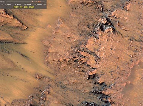 Tàu Quỹ đạo Trinh sát sao Hỏa (MRO) của Cơ quan Hàng không vũ trụ Mỹ (NASA) vừa công bố những hình ảnh mới nhất cho thấy dòng nước chảy tồn tại trên hành tinh này vào mùa xuân và mùa hè. Các bức ảnh được đăng tải trên tạp chí Time.