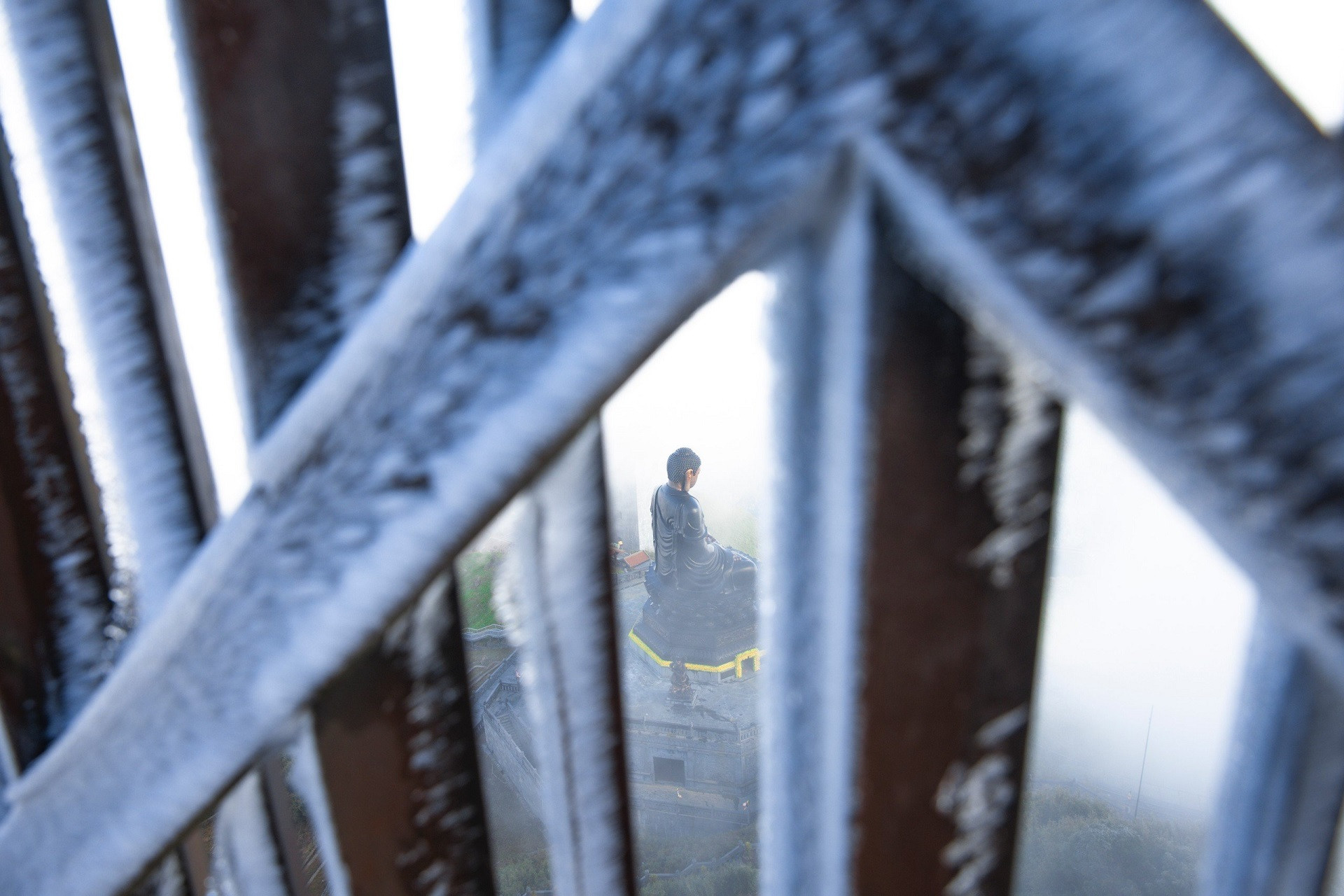 Đây là lần thứ 5 băng giá xuất hiện trên đỉnh Fansipan trong năm 2023. Theo hình ảnh ghi nhận, băng phủ lớp mỏng trên đại tượng Phật A Di Đà, nằm ở độ cao khoảng 2.900m so với mực nước biển. Lớp băng cũng đóng trên bề mặt sàn gỗ, rào chắn, bậc thang, cây cối, tạo nên hình ảnh ấn tượng.
