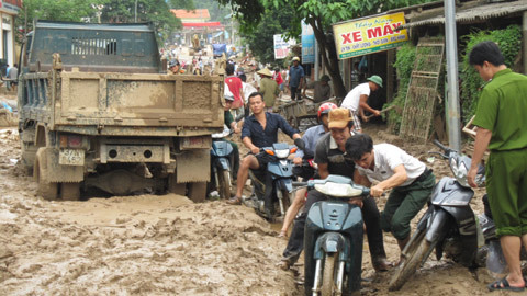 | Thị trấn Mường Xén, huyện Kỳ Sơn là nơi chịu hậu quả nặng nề nhất của trận lũ quét. |