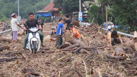 | Người dân thi nhau nhặt củi trên mặt cầu Mường Xén |