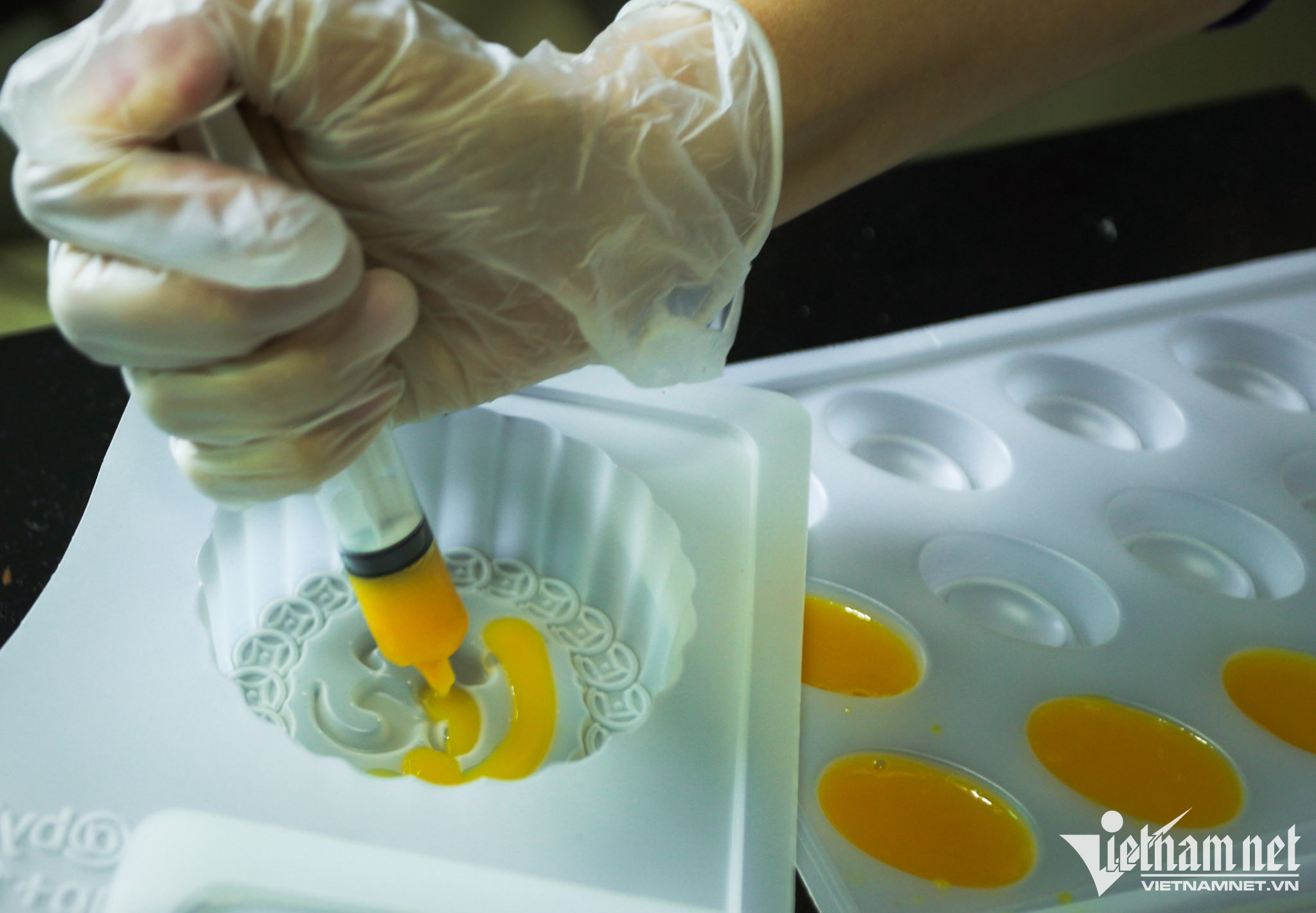 Do bánh làm thủ công, mất nhiều thời gian, tiệm không dám nhận thêm đơn vì sợ không thể cung ứng đúng dịp cho khách. “100 đơn hàng cặp bánh thạch có chữ tài lộc khách đặt cả tuần nay đều đã kịp giao", chị Hà nói.