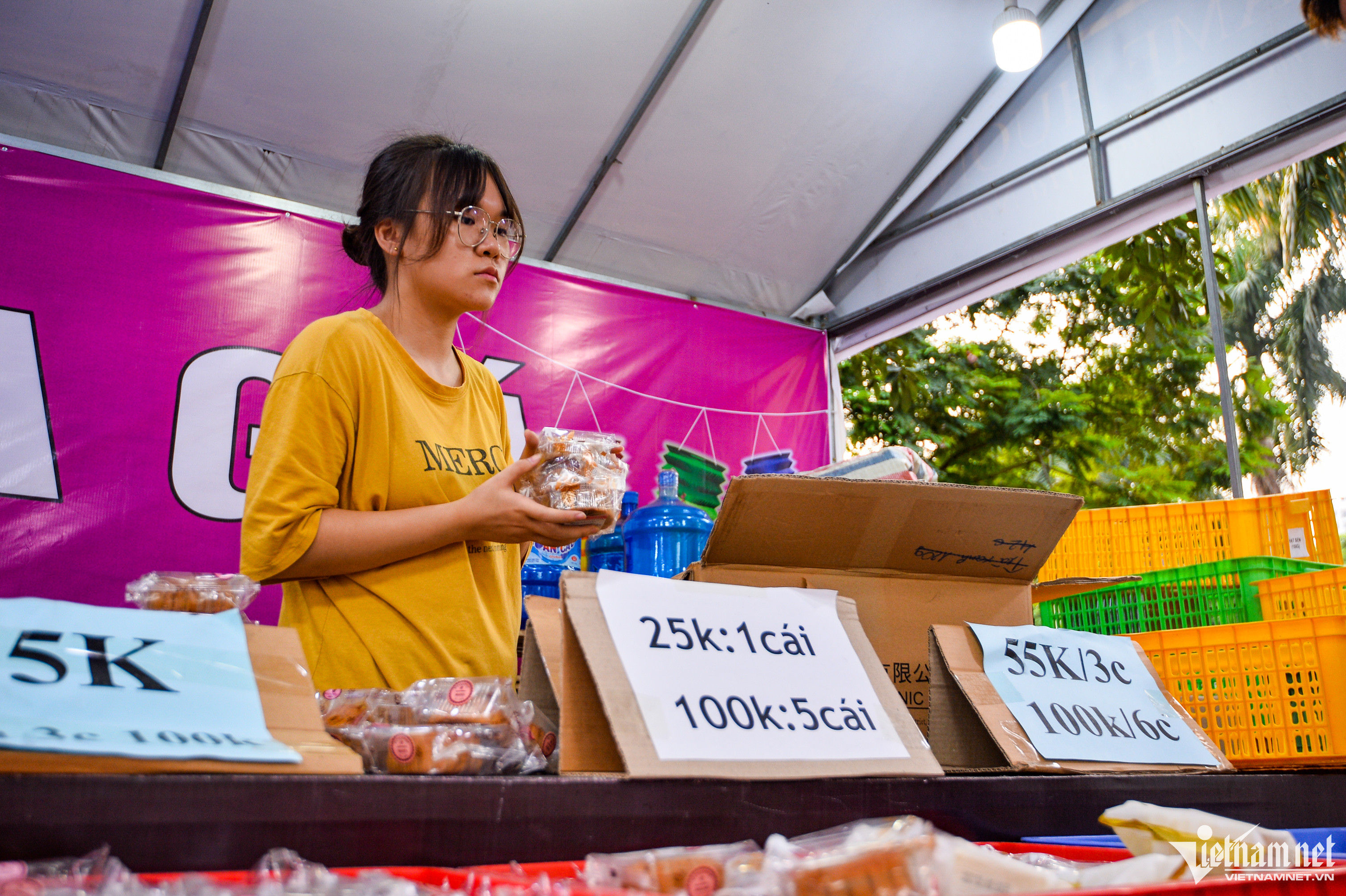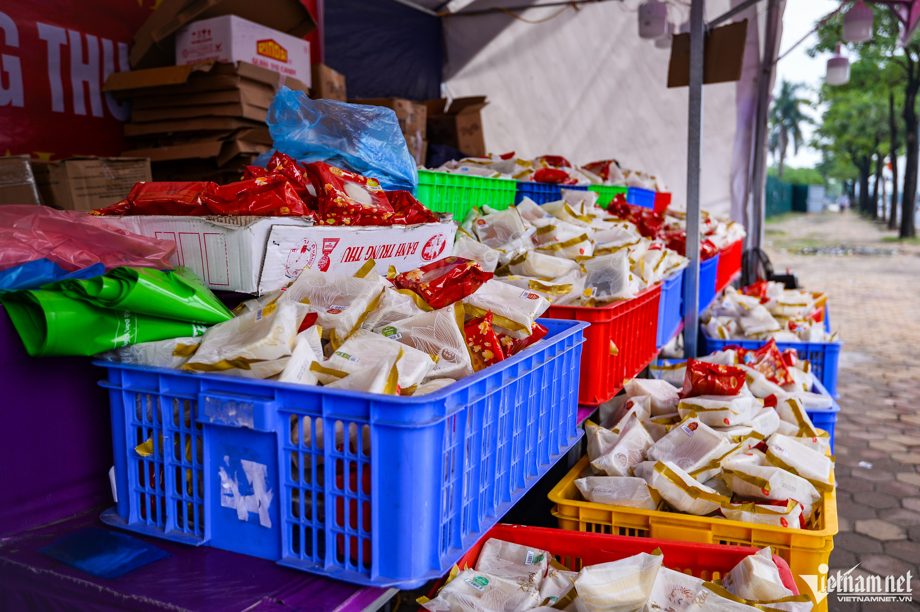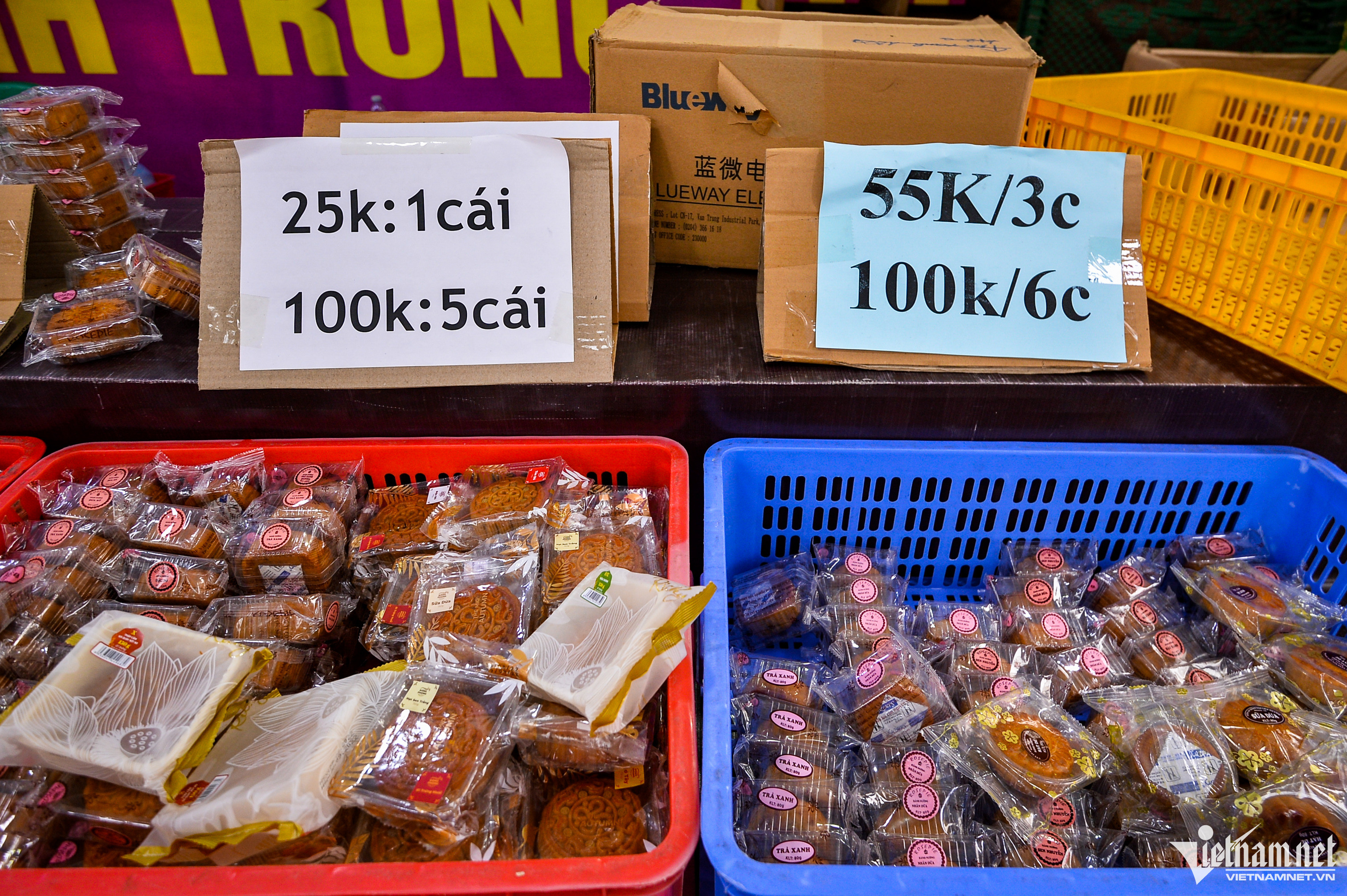 Những chiếc bánh Trung thu ế được bán với giá rất rẻ, chỉ từ 15.000 đến 30.000 đồng/cái. Trước đó, giá gốc bán ra thường gấp 4 - 5 lần. Từ những chiếc bánh nằm trong hộp sẵn, để bán lẻ, nhân viên sẽ phân loại theo hãng, nhân, kích cỡ bánh sau đó chất lên từng rổ nhựa.