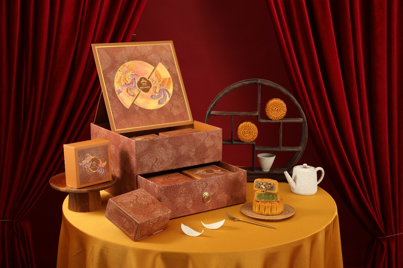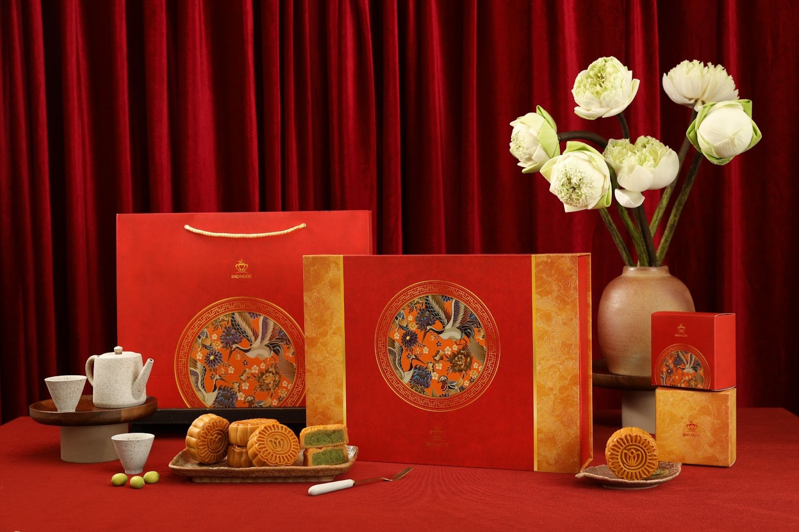Lấy cảm hứng từ nghệ thuật, văn hoá dân gian sáng tạo với nhiều hương vị truyền thống mang hơi hướng hiện đại, BST Tinh hoa truyền tải, nâng niu và gìn giữ những nét đẹp truyền thống Việt Nam. Với những lời chúc Phú Quý, Như Ý, Cát Tường, BST Vy Nguyệt mang theo những lời nhắn gửi về một mùa trung thu phúc lộc, đủ đầy đến người thân, bạn bè và đối tác. Bên cạnh đó, dòng sản phẩm cao cấp nhất của Bảo Ngọc năm nay là BST Bảo Ngọc Luxury hứa hẹn mang đến một món quà trao tay tinh tế, sang trọng, vẹn toàn ý nghĩa.