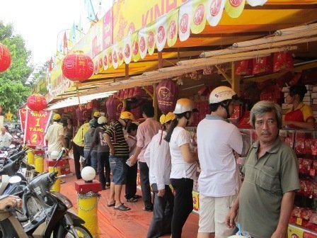 Tại những cửa hàng bán bánh trung thu gia truyền trên đường Tống Duy Tân, từ sáng sớm cho đến tối, lúc nào cũng có đến hàng trăm người chen chân nhau để mua bánh. Đây đều là những cửa hàng bán bánh trung thu gia truyền lâu năm.