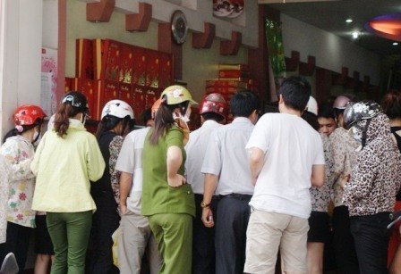 | Một cửa hàng bánh gia truyền có đến hàng trăm người chen chân nhau mua bánh. |