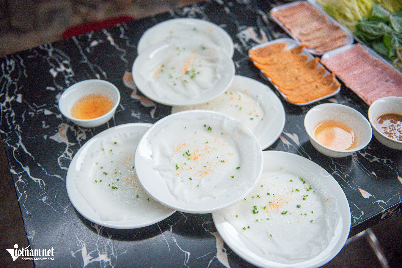 Bánh ướt được tráng "siêu mỏng" rồi cho vào từng đĩa, rắc thêm mỡ hẹ, bột tôm khô. Loại bánh này được nhiều du khách yêu thích khi tới Đà Lạt.