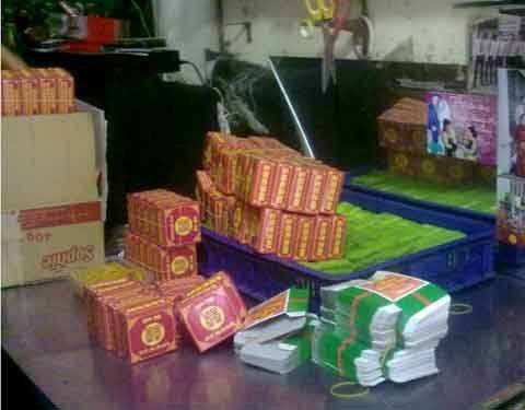Theo chỉ dẫn của bác B., chúng tôi trở về Hàng Than – con phố chuyên cung cấp tất cả các dịch vụ, đồ dùng phục vụ cho đám cưới. Tại đây, hầu hết các quán bán hàng đều kiêm luôn khâu sản xuất các loại bánh khác nhau, bao gồm từ bánh cốm cho tới bánh xu xê, phu thê,… phục vụ dịch vụ cưới, hỏi. “Em thích loại nào thì sẽ có loại đó, số lượng bao nhiêu cũng có. Thích màu nào, chị cho màu ấy. Giá tiền giống nhau: 5.000 đồng/chiếc”, chủ một quán trên phố Hàng Than mời chào khi thấy chúng tôi có nhu cầu đặt bánh cho lễ cưới sắp đến gần.