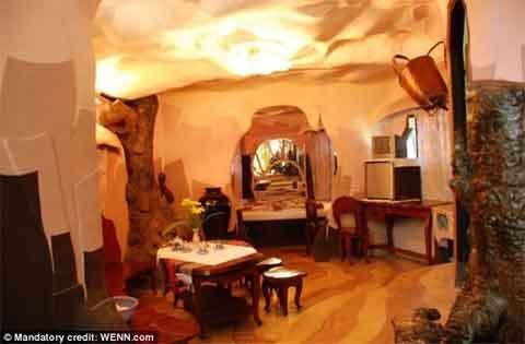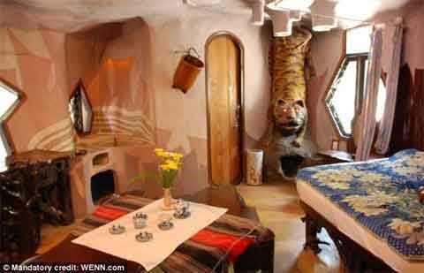 Bên trong, các căn phòng theo chủ đề chứa đựng các món đồ thủ công, quái lạ và cầu thang, hành lang cũng được xây dựng kiểu hang động.