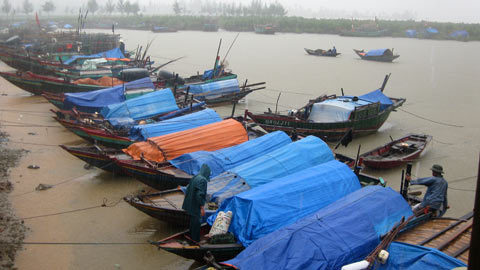 Các tàu thuyền của ngư dân tại huyện Nghi Lộc đang được tích cực tìm nơi neo đậu an toàn. Ảnh Quốc Huy |