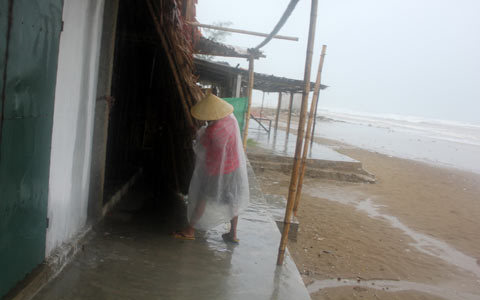 Mặc dù bão sắp đổ bộ vào nhưng người dân ở khu vực bãi biển xã Thạch Bằng vẫn chưa được di dời - (Ảnh: Duy Tuấn) |