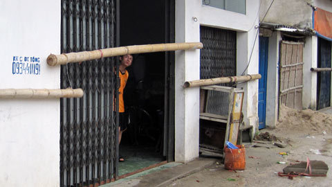 Những hàng quán ven đường được người dân dùng thang và luồng quai lại để đề phòng bão ập đến. Chị Minh, một người bán tạp hóa ven đường tại xã Hải Thanh vừa dùng luồng quai lại cửa nhà vừa cho biết: Bình thường cửa kéo nhà chị cũng rất chắc, nhưng nghe tivi thông báo bão giật cấp 9, cấp 10 nên ai cũng phải đề phòng.