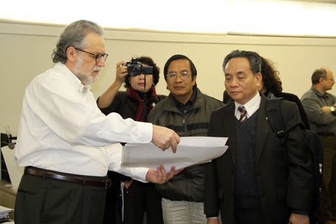 Ông Kim Komenich trao đổi kinh nghiệm về công tác phóng viên ảnh. Ông đã