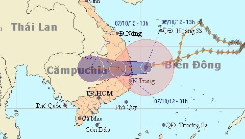 Lúc 5 giờ chiều ngày 6/10, vị trí tâm áp thấp nhiệt đới ở vào khoảng 13,3 độ Vĩ Bắc; 109,4 độ Kinh Đông, trên vùng bờ biển các tỉnh Bình Định – Phú Yên.