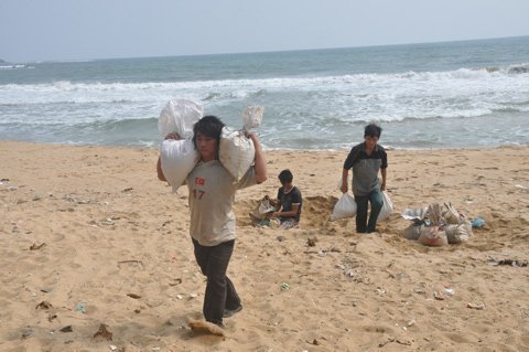 địa phương huyện Sơn Tịnh cũng đã huy động máy đào móc rác rác thải thông các