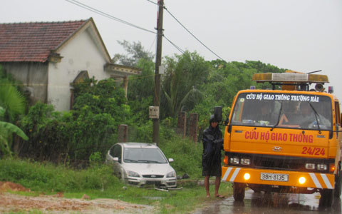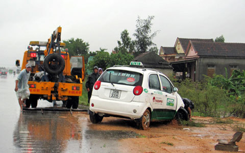 Tại xã Vượng Lộc, huyện Can Lộc chiếc taxi của hãng Mai Linh mất lái bay xuống ruộng, sau đó đã được xe cứu hộ cẩu lên bờ. Tại xã Thạch Kênh, huyện Thạch Hà, vào lúc 14h, một chiếc ô tô 4 chỗ đã bị mất lái trượt dài trên đường, đâm vào cột mốc vài bay xuống vườn nhà dân. |
