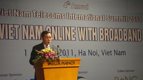 | Thứ trưởng Bộ Thông Tin - Truyền Thông Trần Đức Lai phát biểu tại Hội nghị Viễn thông Quốc tế Việt Nam 2011. Ảnh: Trọng Cầm |