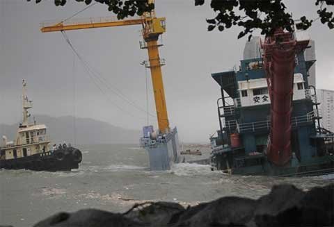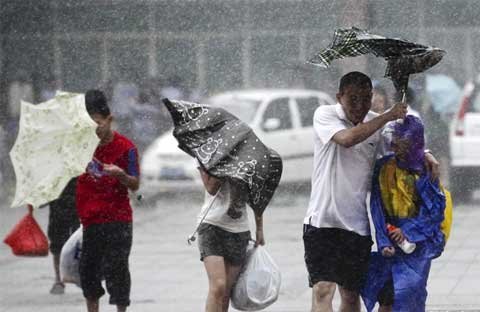 Người dân Trung Quốc chống chọi với bão Nesat ở miền nam Trung Quốc sau khi nó đã tấn công Hong Kong và Philppines.