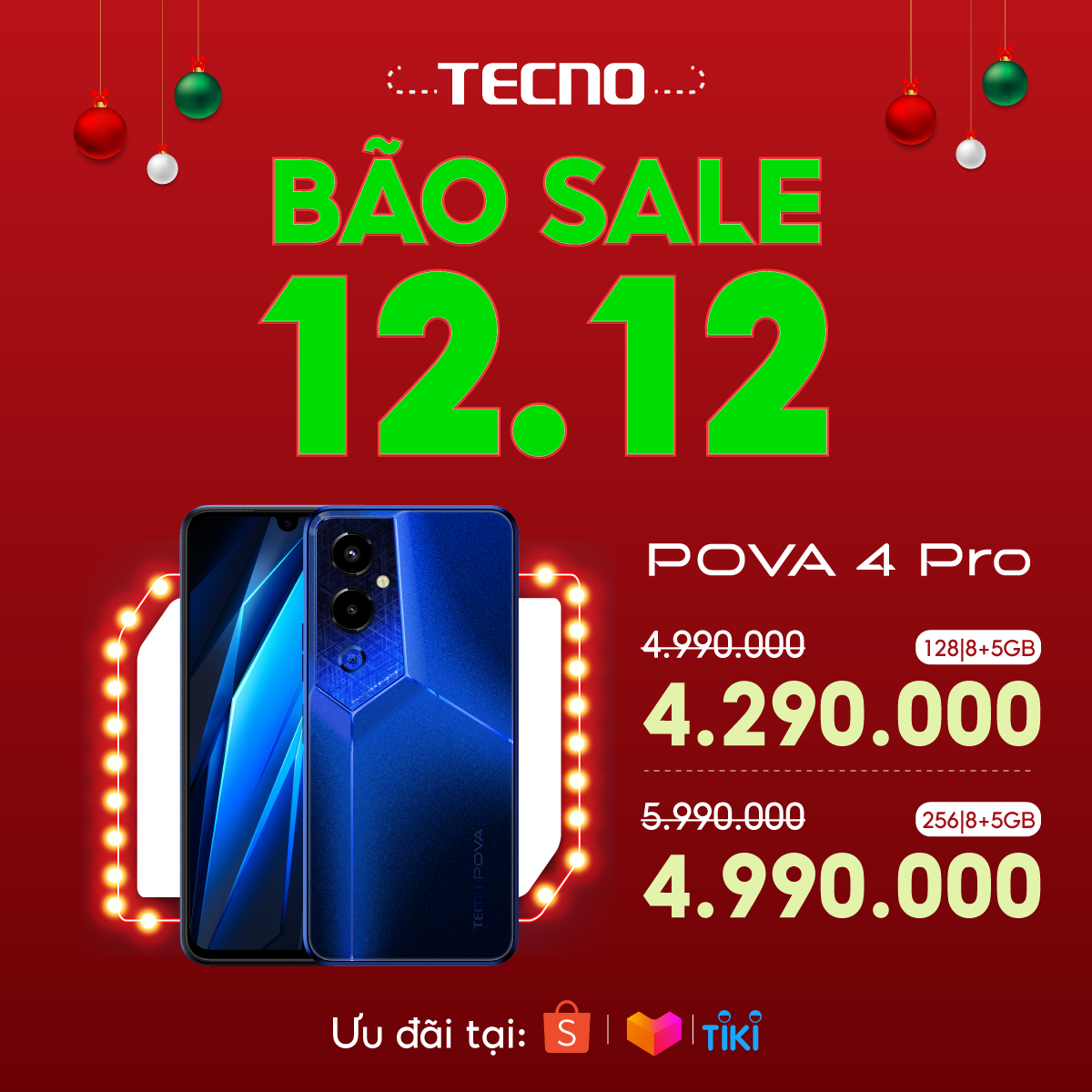 Trong dịp siêu sale 12/12, Pova 4 Pro phiên bản 128+8GB sẽ giảm giá còn 4.290.000 VNĐ và phiên bản 256+8GB giá còn 4.990.000 VNĐ.