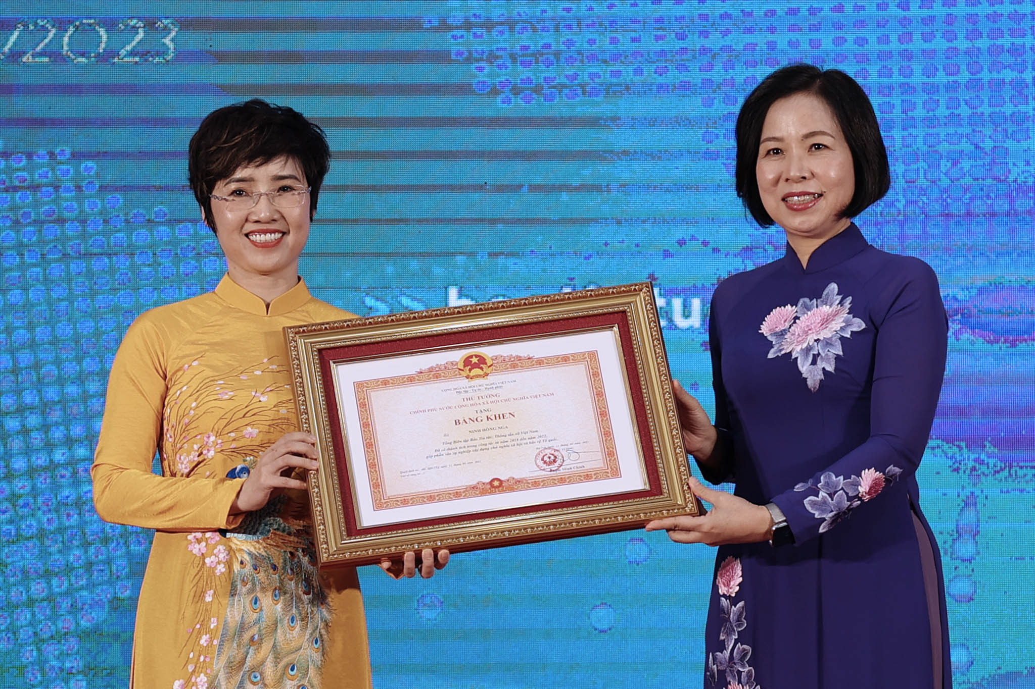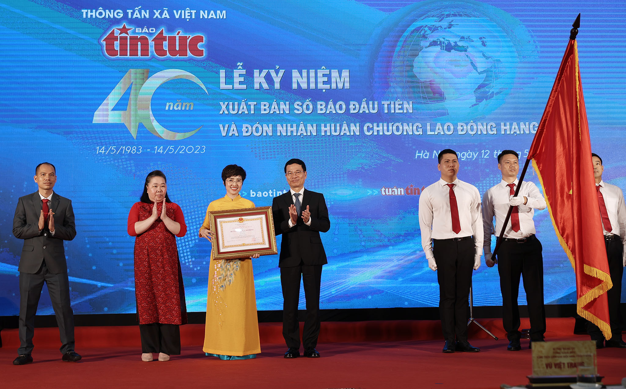 Tại buổi lễ, thừa ủy quyền của Chủ tịch nước, Bộ trưởng Bộ Thông tin và Truyền thông (TT&TT) Nguyễn Mạnh Hùng đã trao Huân chương Lao động hạng Nhất cho báo Tin tức.