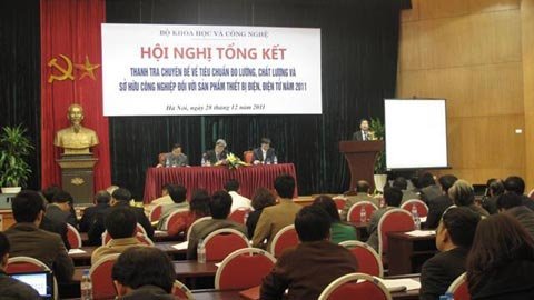 | Hội nghị tổng kết thanh tra chuyên đề về tiêu chuẩn, đo lường, chất lượng và sở hữu công nghiệp đối với sản phẩm, thiết bị điện, điện tử năm 2011 (Ảnh: Phương Nga) |
