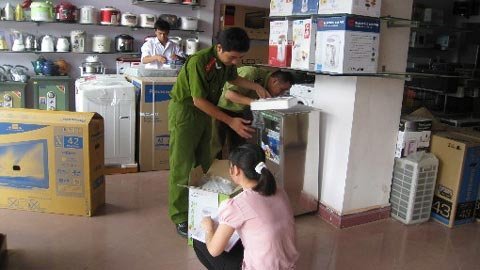 | Thanh tra thiết bị điện, điện tử tại Hòa Bình (Ảnh: Sở KH&CN Hòa Bình) |