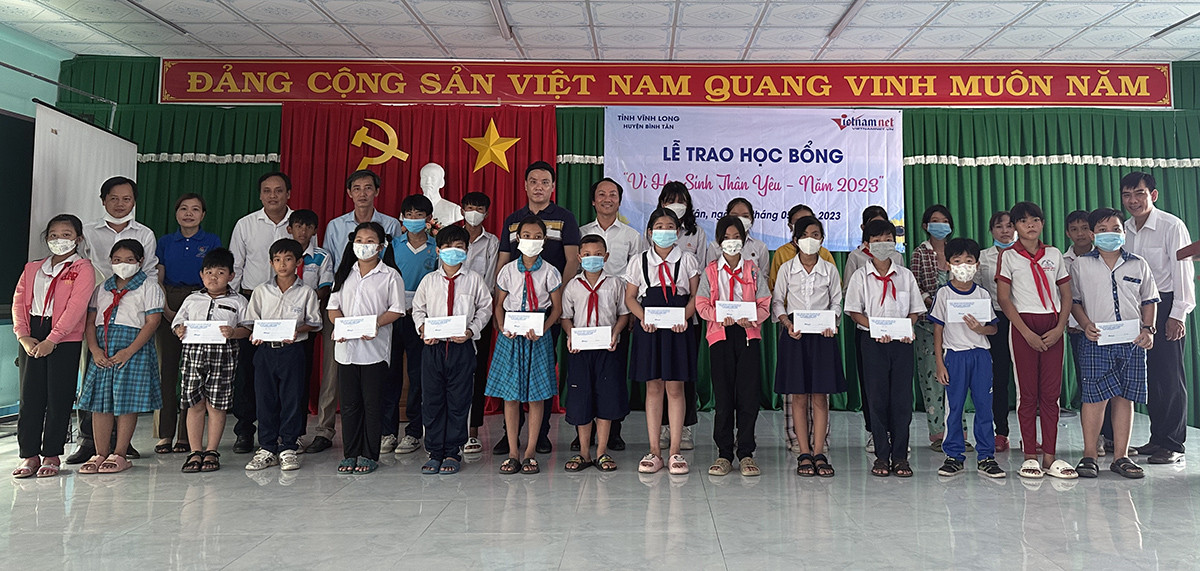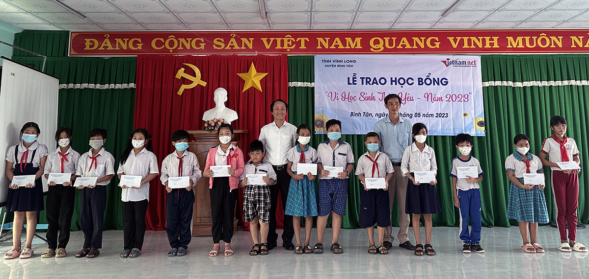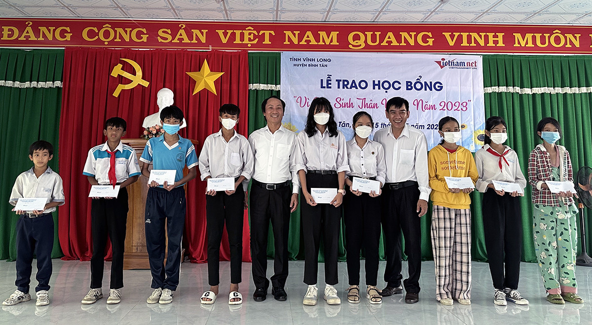 Tham dự buổi lễ trao học bổng "Vì học sinh thân yêu - năm 2023" có ông Đặng Ngọc Chính, đại diện lãnh đạo báo VietNamNet; lãnh đạo huyện Bình Tân; lãnh đạo Phòng Giáo dục và Đào tạo huyện; 25 em học sinh nhận học bổng, nhiều phụ huynh học sinh và thầy cô giáo.