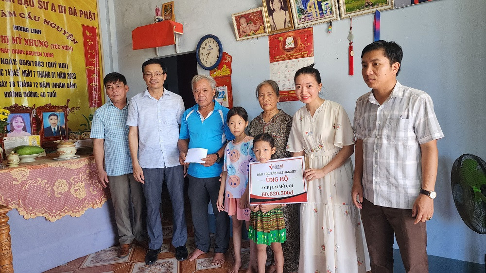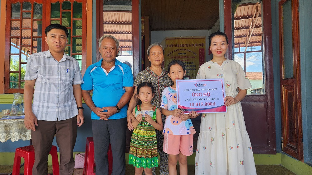 Vừa qua, đại diện Báo VietNamNet phối hợp cùng lãnh đạo UBND huyện Hải Lăng và lãnh đạo UBND xã Hải Dương trao số tiền hơn 70 triệu đồng do bạn đọc ủng hộ đến 3 chị em Hà Vy (SN 2013), Tuấn Khang (SN 2015) và Phương Trinh (SN 2017) mồ côi cả cha lẫn mẹ ở thôn Đông Dương (xã Hải Dương) .