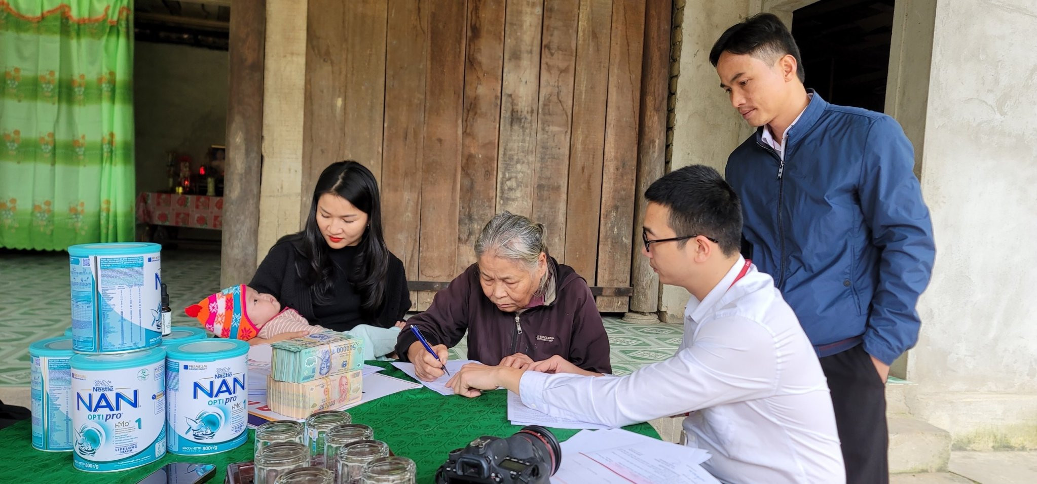 Mới đây, Báo VietNamNet vừa phối hợp với Thượng tá Nguyễn Hồng Phong, Giám đốc Công an tỉnh Hà Tĩnh, lãnh đạo UBND huyện Hương Khê, UBND xã Phú Gia, Ngân hàng Agribank chi nhánh Hương Khê… đến thăm bé Phan Đình Bình (4 tháng tuổi) mồ côi mẹ ở thôn Quang Lộc, xã Phú Gia, huyện Hương Khê (Hà Tĩnh).