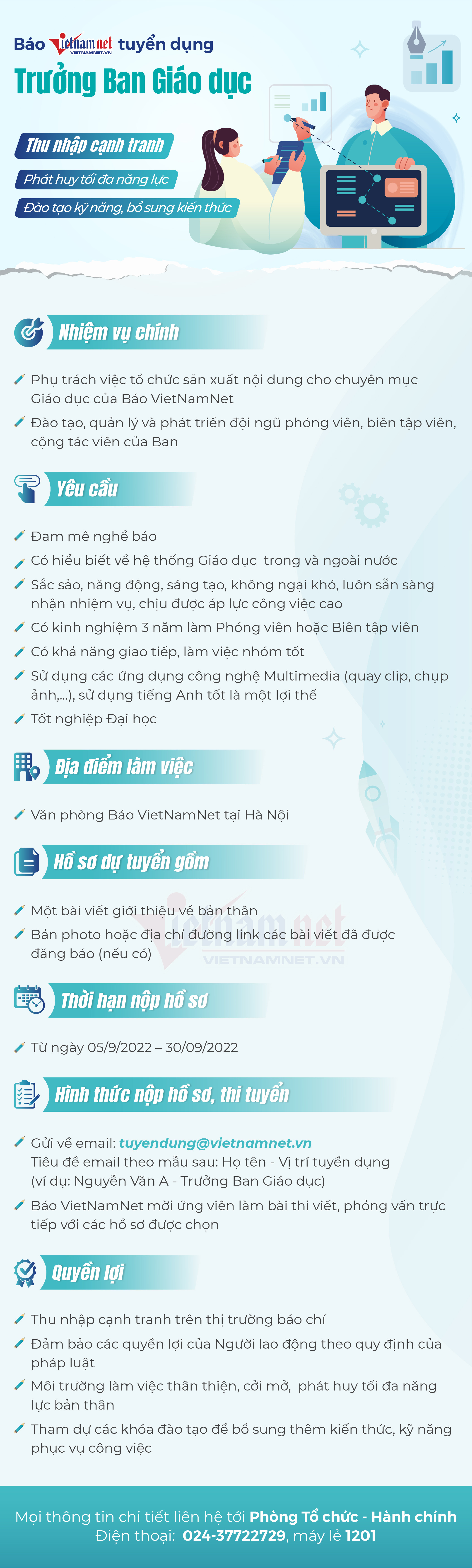 Báo VietNamNet tuyển dụng vị trí Trưởng ban Giáo dục