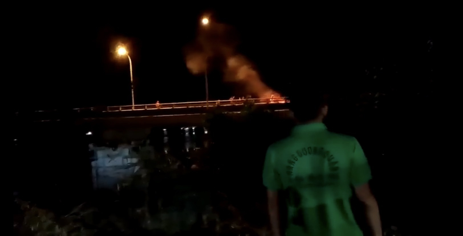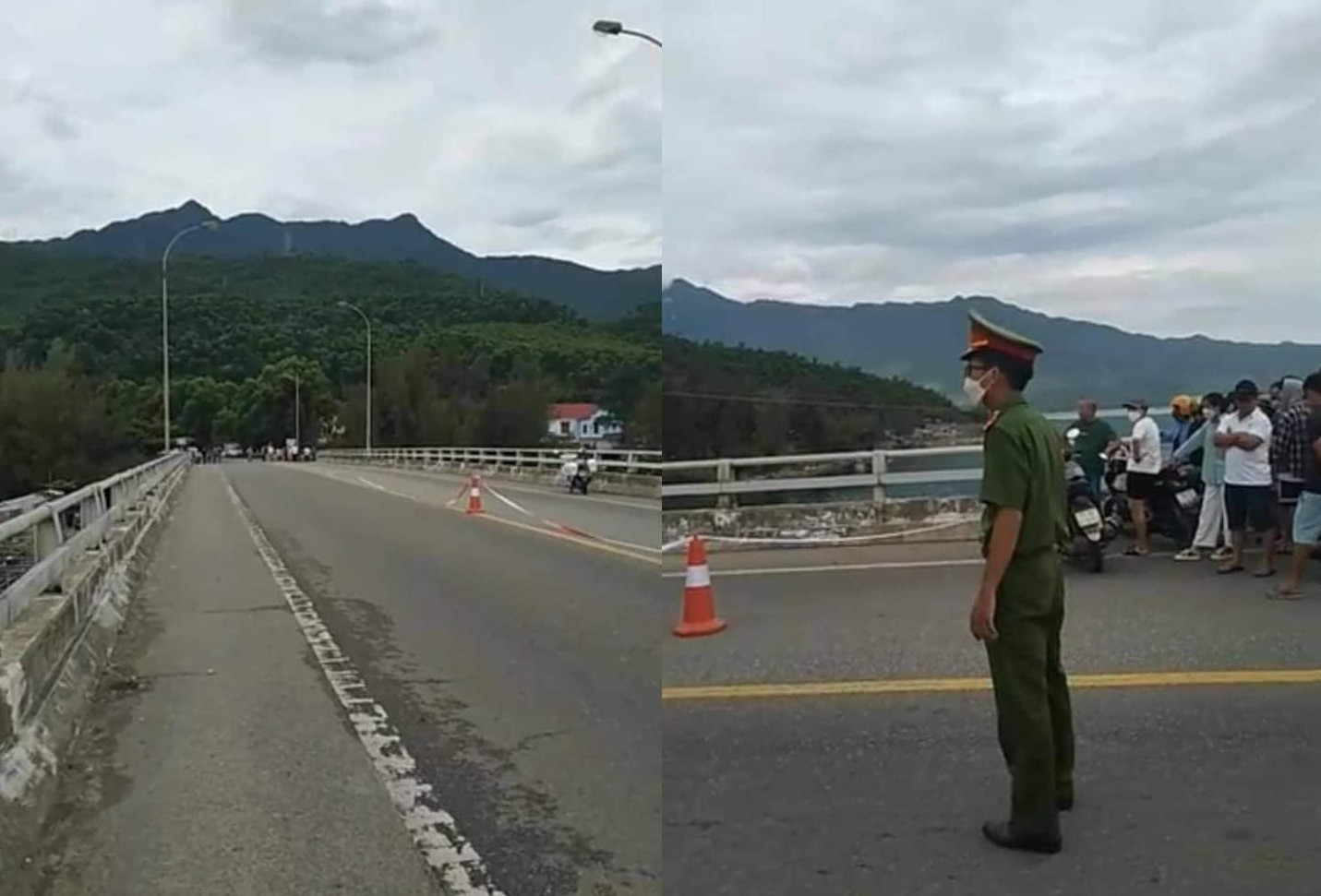 Vụ hỗn chiến với súng và dao trên cầu Lăng Cô được người dân ghi lại. Ảnh: Người dân cung cấp