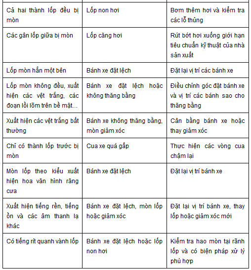 Dưới đây là một số thao tác kiểm tra, phát hiện các vấn đề lốp xe: