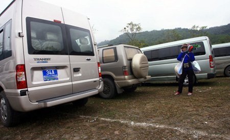 Đến những loại xe 16 chỗ đeo biển xanh có mặt tại bãi đỗ xe của lễ hội Yên Tử.