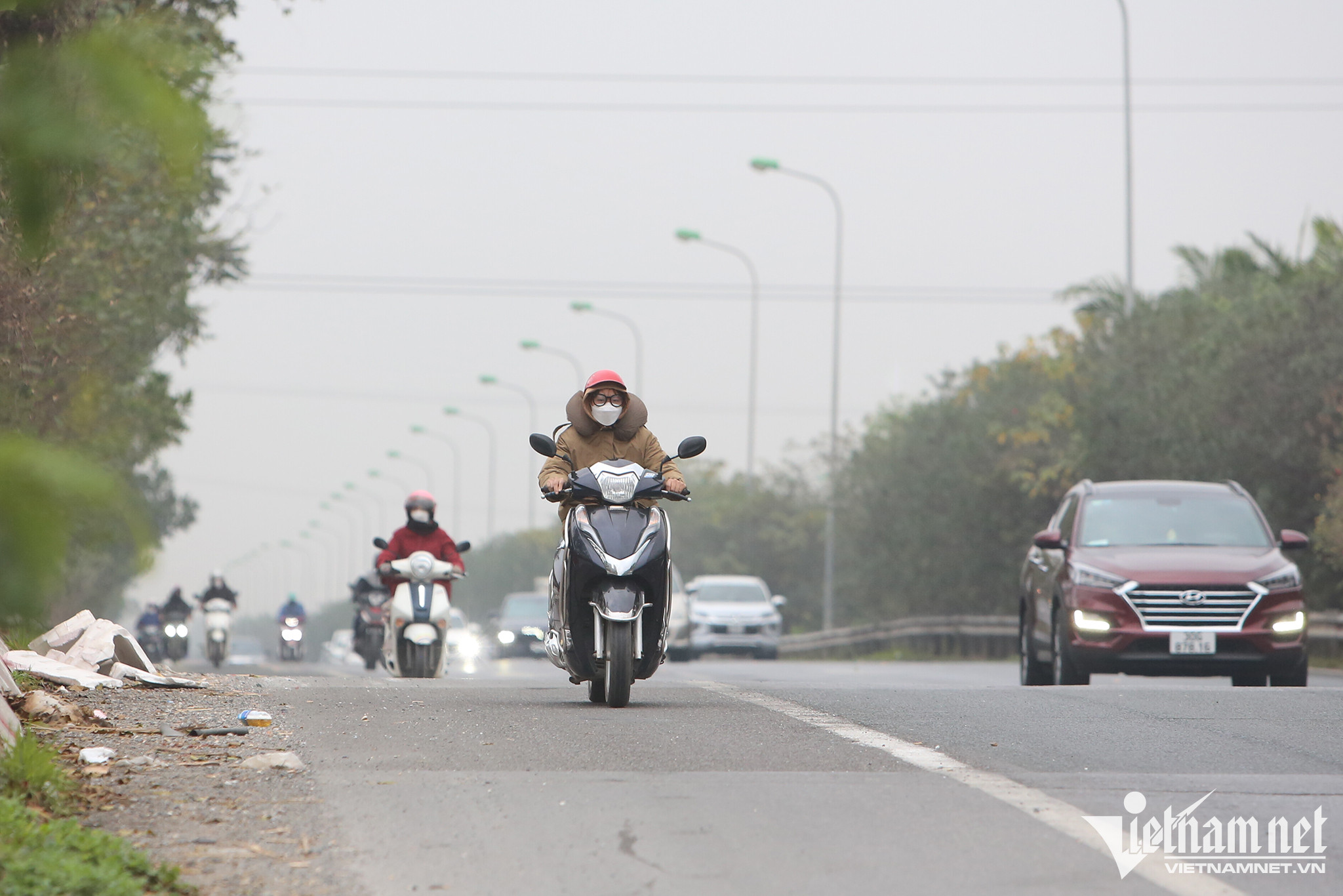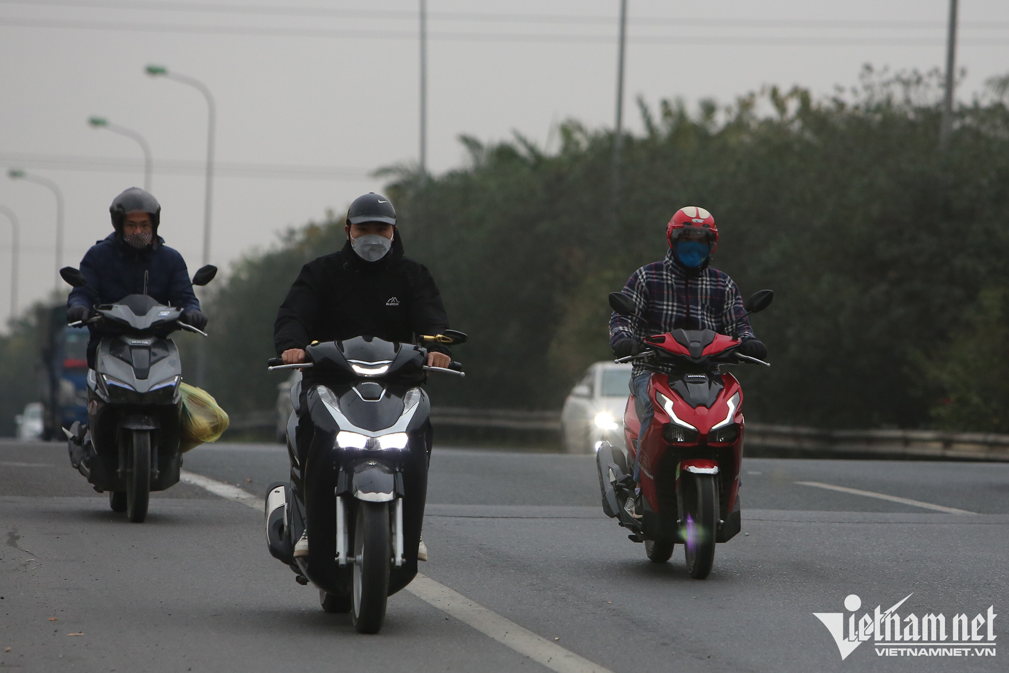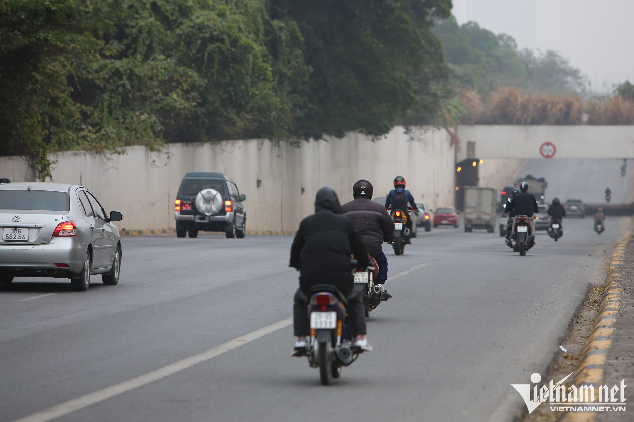 Theo ghi nhận của PV VietNamNet vào sáng 2/2, có hàng trăm lượt xe máy vẫn vô tư đi vào làn cao tốc của Đại lộ Thăng Long. Hàng đoàn xe máy nối đuôi nhau đi trong cao tốc, thậm chí nhiều xe còn phóng tốc độ cao lấn làn ô tô.