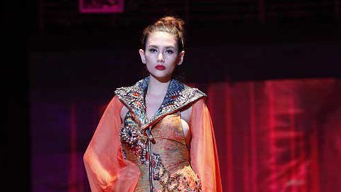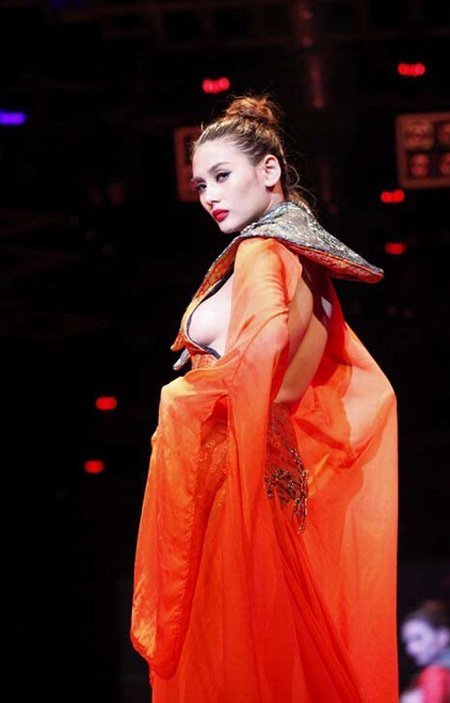 Bộ váy cách điệu từ trang phục vua chúa ngày xưa với phần cổ cao, tay dài, nhưng lại hở lưng và khoét sâu từ nách vào ngực đã tạo nên khiến Võ Hoàng Yến rơi vào tình trạng hở hang quá đà trên sân khấu.