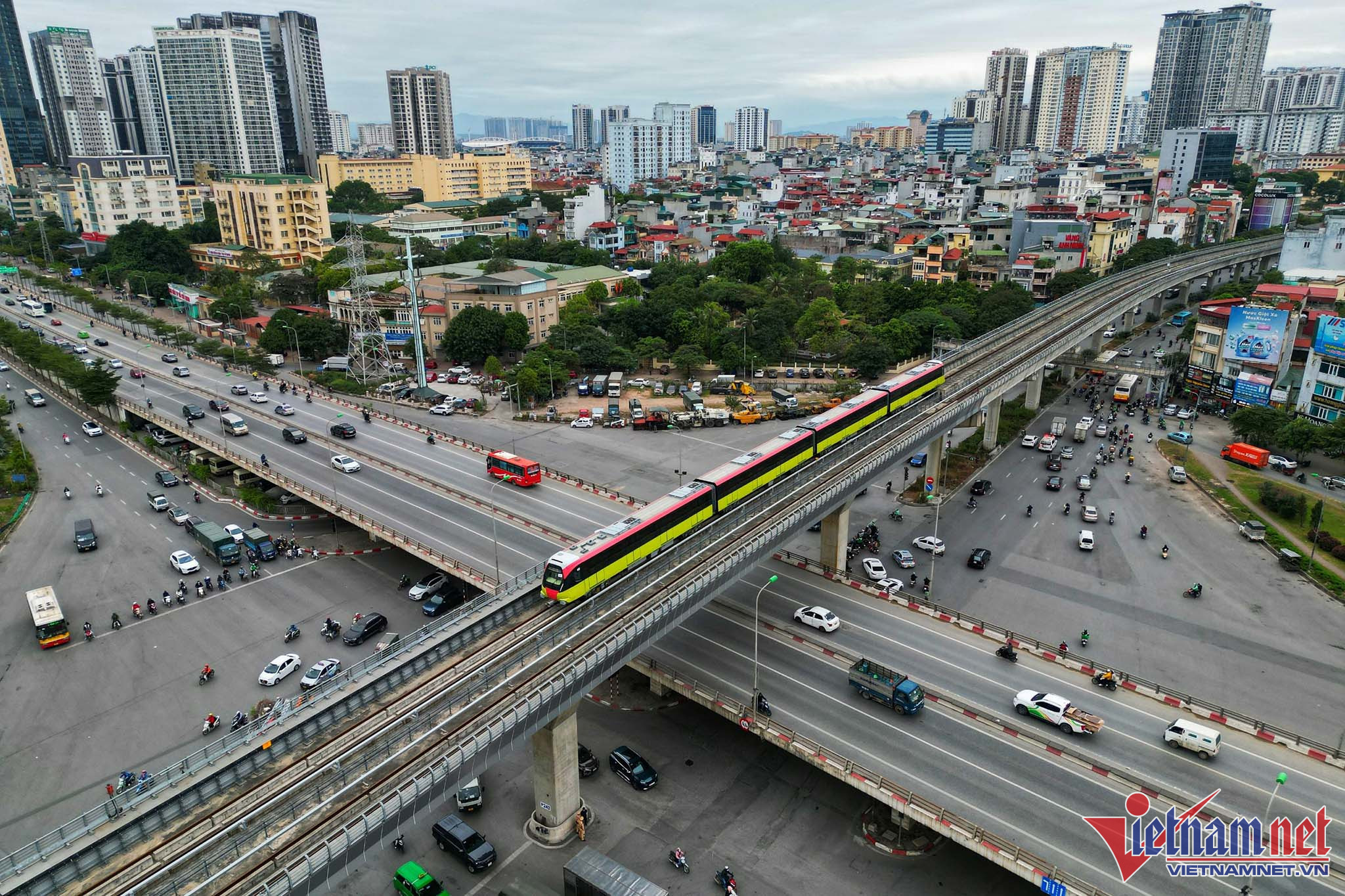 Sáng 5/12, dự án tuyến đường sắt đô thị thí điểm của thành phố Hà Nội, tuyến số 3, đoạn Nhổn - Ga Hà Nội chính thức bước vào chạy thử đoạn trên cao.