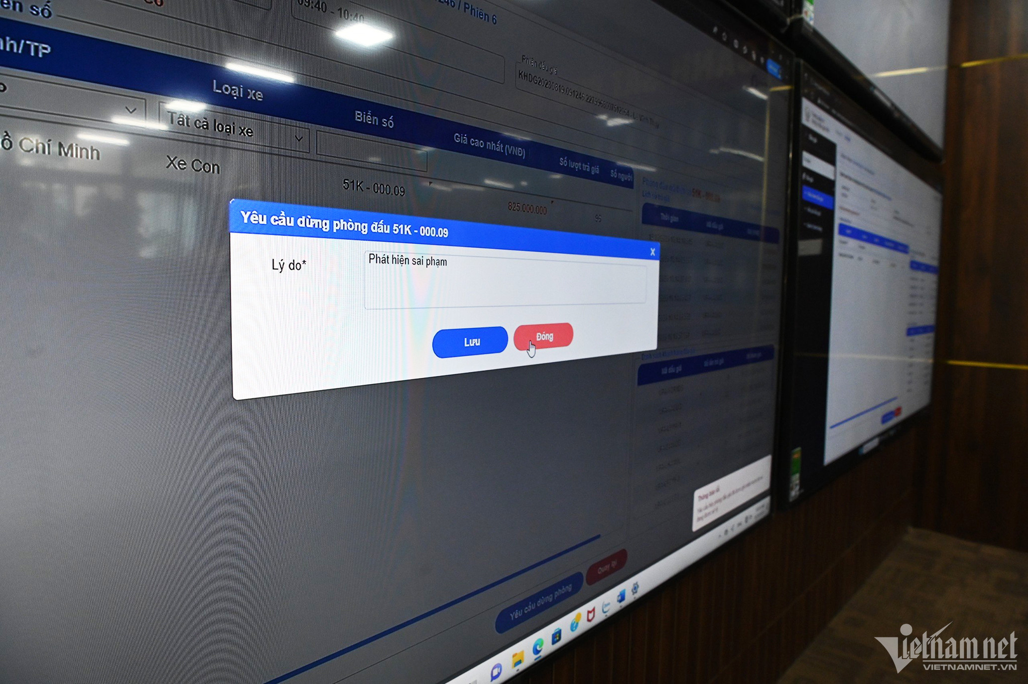 Các thông tin gồm: số kế hoạch, tên phiên đấu, thời gian bắt đầu và kết thúc của từng cuộc, số lượng biển số đấu giá, và khách hàng tham gia, diễn biến quá trình đấu giá... sẽ hiển thị tại 6 màn hình lớn đặt trong phòng quản lý, giám sát đấu giá biển số xe ô tô.