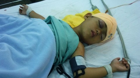 Tại bệnh viện, các bác sĩ cho biết, cháu Hào đã bị chém một nhát vào đỉnh đầu dài 17cm làm dập não. Sau khi tiến hành phẩu thuật não, hiện cháu Hào đã tạm thời qua khỏi cơn nguy kịch.