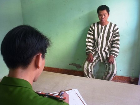 | Đối tượng Nguyễn Thanh Bình bị bắt giữ tại cơ quan công an (Ảnh: TA) |