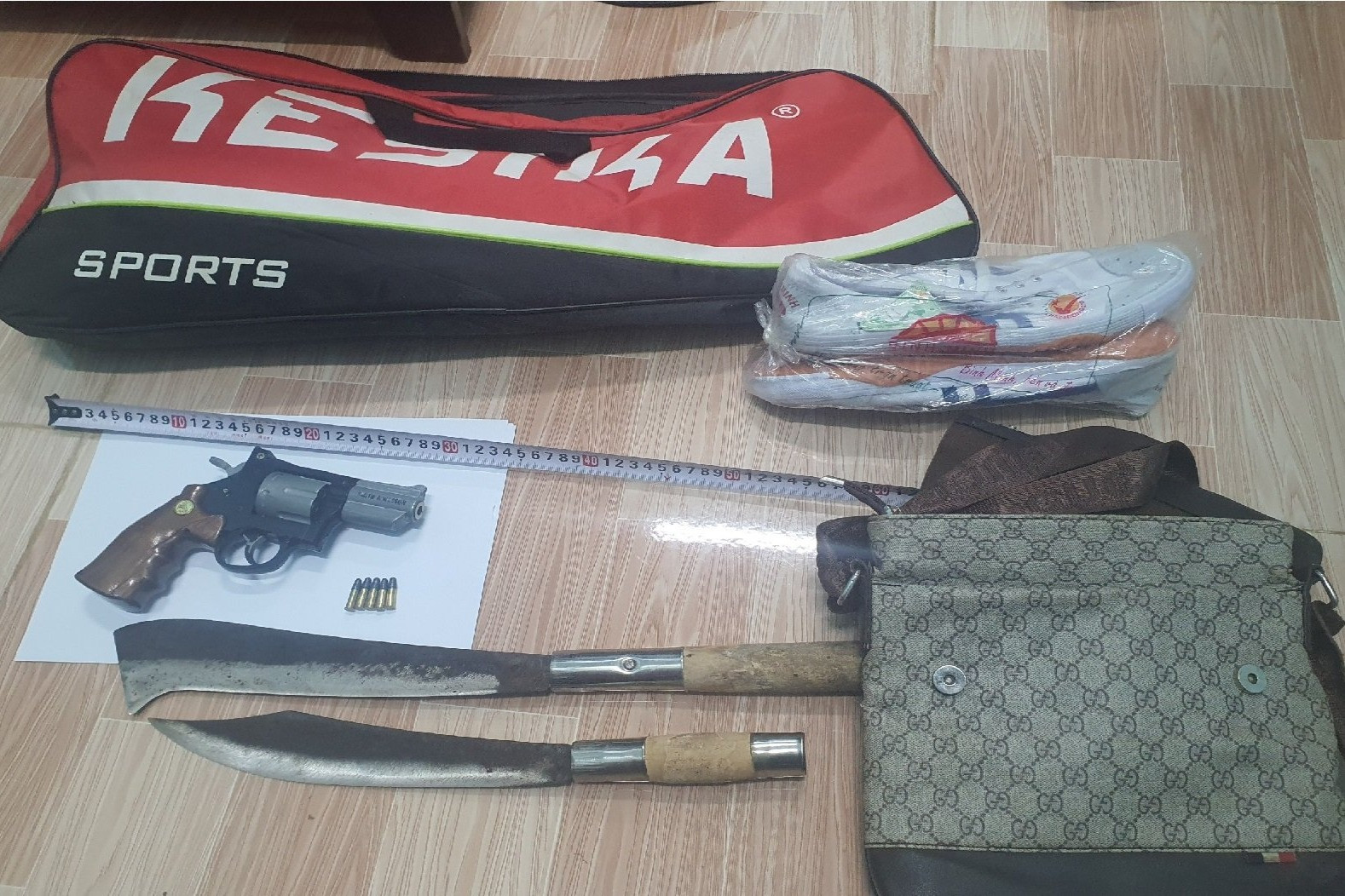 Đến khoảng 12h ngày 20/3, Khải bị công an bắt giữ tại nhà người quen, thu giữ 2 khẩu súng cùng nhiều viên đạn.